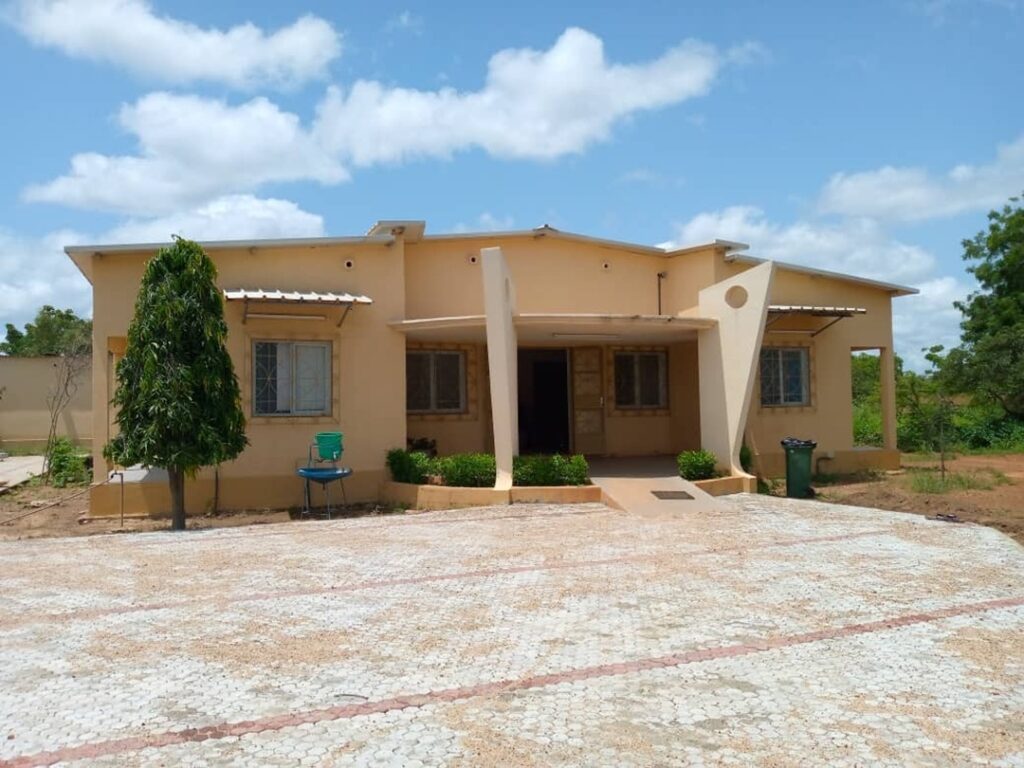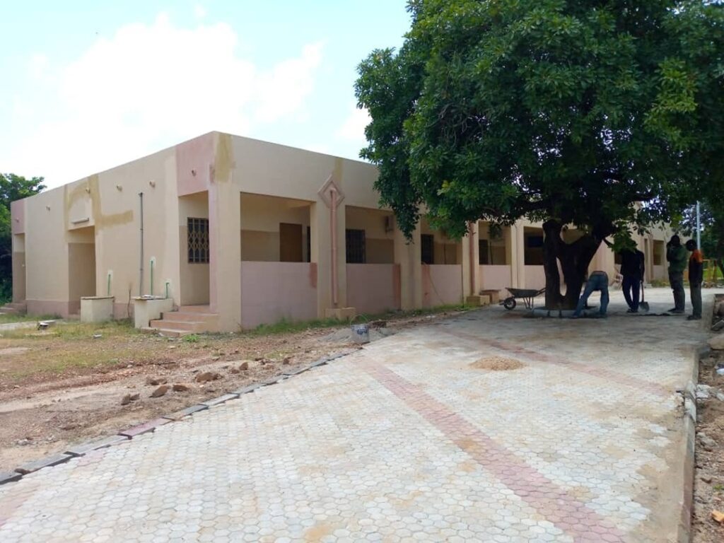 A l’entrée du Centre, en saison de pluies l’eau stagnait en grande quantité.